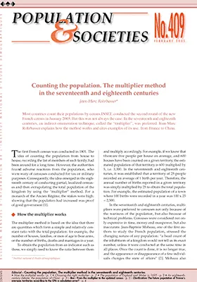 Most countries count their populations by census.INSEE conducted the second round of the new rench census in January 2005. But this was not always the case. In the seventeenth and eighteenthcenturies, an indirect enumeration technique, called the "multiplier", was preferred. Jean-Marc ohrbasser explains how the method works and cites examples of its use, from France to China.
