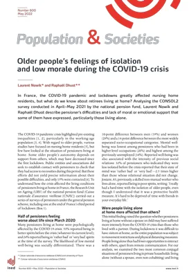 People living alone at home were 3 times more likely to report psychosocial difficulties than people living with a partner (moral support cluster). While this group represents only 6.2% of pensioners who live alone (all ages and sexes combined), in absolute terms it represents a large number of individuals (more than 5 million people aged 60 and over live alone at home in France). Furthermore, this is a minimum estimate because not all those who reported poor mental well-being had sought support from others (i.e. indicated that they needed moral support), which does not mean that they were in less difficulty. Among respondents who reported that they felt better about life before the COVID-19 crisis (53% of the sample), only 21% expressed a need for help or support. The same goes for feelings of isolation. While most respondents (60% of the sample) indicated that they had felt more isolated since the start of the crisis, only 20% expressed a need for support (moral or other).
