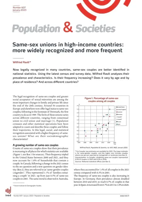Now legally recognized in many countries, same-sex couples are better identified in national statistics. Using the latest census and survey data, Wilfred Rault analyses their prevalence and characteristics. Is their frequency increasing? Does it vary by age and by place of residence? And across different countries?