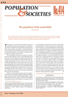 Every other year, the summer issue of Population and Societies called The population of the world presents global picture of the world population. The data shown here can be found in the WorldPopulation Data Sheet published by the Population Reference Bureau (PRB).