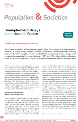 - Men and women less frequently report wanting a first child in the near future if they are unemployed. Moreover, for those who do want to become parents, experience of unemployment delays the first birth. This postponement can be explained by delayed union formation for men, and by the desire to find a stable job for women. By contrast, unemployment does not affect the childbearing plans of persons who are already parents.