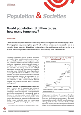 According to the United Nations, the world population will reach 8 billion in mid-November 2022 [1] (Box 1). From just 1 billion in 1800, it has risen eightfold over the last 2 centuries. This steady increase is likely to continue. Under the UN medium variant projections (Figure 1), the planet will be home to around 10 billion people by the end of the 21st century, while the low and high variants give figures of 7 and 15 billion in 2100. However, according to the UN itself, this range of possibles is extremely broad, with a twofold difference between the high and low variants, and their respective outcomes are highly improbable. Within a narrower range, the UN estimates that there is a 95% chance that the population will be between 8.9 and 12.4 billion in 2100 [1]. Why can we expect this growth to continue? Will it level off over the long term?
