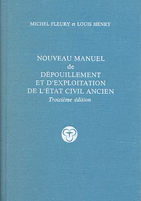 Nouveau manuel de dépouillement et d’exploitation de l’état civil ancien ÉPUISÉ Louis Henry, Michel Fleury Collection : Manuels et textes fondamentaux 1985, 202 pages Dernières publications des auteurs Anciennes familles genevoises Louis Henry (2014) Методика анализа в исторической демографии Louis Henry, Alain Blum (1997) Techniques d'analyse en démographie historique Alain Blum, Louis Henry (1988)