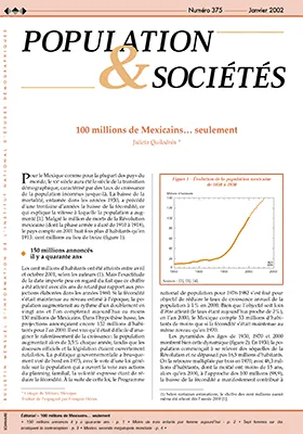 Pour le Mexique comme pour la plupart des pays du monde, le XXe siècle aura été le siècle de la transition démographique, caractérisé par des taux de croissance de la population inconnus jusque-là. La baisse de la mortalité, entamée dans les années 1930, a précédé d'une trentaine d'années la baisse de la fécondité, ce qui explique la vitesse à laquelle la population a augmenté [1]. Malgré le million de morts de la Révolution mexicaine (dont la phase armée a duré de 1910 à 1918), le pays compte en 2001 huit fois plus d'habitants qu'en 1913 : cent millions au lieu de treize.