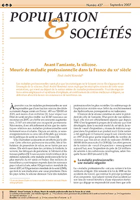 Les maladies professionnelles ne semblent responsables que d'une fraction minime des décès survenant chaque année en France : moins d'un millième. Mais il est admis que les statistiques sont fortement sous-évaluées dans ce domaine. La silicose, par exemple, maladie professionnelle la plus mortelle du XXe siècle, aurait été responsable de 40 000 morts de 1946 à 1987. Mais le chiffre réel est probablement deux à trois fois plus élevé. La sous-estimation tient à plusieurs causes se combinant, notamment la non-reconnaissance de la maladie, les décès imputés à d'autres causes, le départ des mineurs pour d'autres secteurs et la non-prise en compte de nombreux cas survenus chez les immigrés ayant travaillé dans les mines.