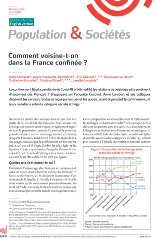 L’enquête Coconel « Logement et Conditions de vie » a été réalisée par l’Ined, en partenariat avec le consortium Coconel, l’ANR, l’IRD, l’INSERM et l’IFOP. Un échantillon de 2 003 personnes, représentatif des adultes résidant en France métropolitaine, a été tiré selon la méthode des quotas (âge, sexe, éducation, groupe socioprofessionnel, région et catégorie de commune). L’enquête s’est déroulée par internet du 30 avril au 4 mai 2020. Elle porte sur la situation avant et pendant le confinement, et aborde différents thèmes : logement et conditions de vie ; emploi et conditions de travail ; enfant et continuité pédagogique ; voisinage et sentiment d’isolement.