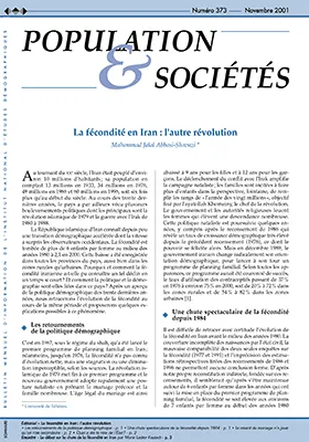La République islamique d'Iran connaît depuis peu une transition démographique accélérée dont la vitesse a surpris les observateurs occidentaux. La fécondité est tombée de plus de 6 enfants par femme au milieu des années 1980 à 2,1 en 2000. Cette baisse a été enregistrée dans toutes les provinces du pays, aussi bien dans les zones rurales qu'urbaines. Pourquoi et comment la fécondité iranienne a-t-elle pu connaître un tel déclin en un temps si court ? Et comment la politique et la démographie sont-elles liées dans ce pays ? Après un aperçu de la politique démographique des trente dernières années, nous retracerons l'évolution de la fécondité au cours de la même période et proposerons quelques explications possibles à ce phénomène.