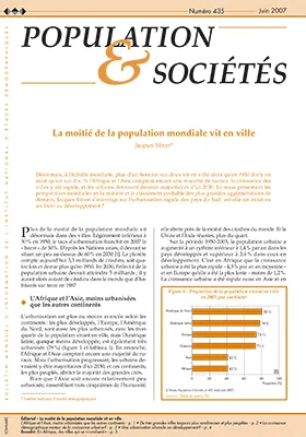 Les villes rassemblent désormais la moitié de l'humanité (3,3 milliards d'hommes). Les pays en développement, qui sont les plus peuplés, comptent aujourd'hui le plus grand nombre de citadins. L'Asie notamment, où habitent trois cinquièmes des hommes, abrite un citadin du monde sur deux. Depuis 50 ans, la population des villes s'accroît bien plus vite dans les pays pauvres que dans les pays riches (4,3 % par an en moyenne en Afrique, 1,2% en Europe), c'est aussi dans les pays en développement que sont aujourd'hui situées 15 des 20 plus grandes agglomérations du monde. C'est aussi dans ces pays que se trouvent 15 des 20 plus grandes agglomérations du monde aujourd'hui. Alors que l'urbanisation est historiquement un des moteurs du progrès économique et social, la forte croissance urbaine actuelle dans les pays du Sud, avec les difficultés de logements, d'emploi ou de transport qu'elle engendre, semble au contraire ralentir leur développement.