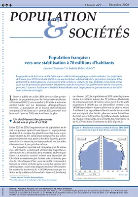 Selon les projections de l'Insee publiées en 2006, la France métropolitaine comptera entre 61 et 79 millionsd'habitants en 2050. Le scénario central conduit à une population de 70 millions d'habitants, plus vieille qu'aujourd'hui. Il annonce une stabilisation à plus long terme, alors que les projections précédentes
