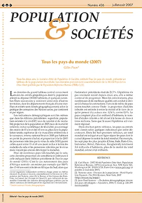 Tous les deux ans, le numéro d'été de Population & Sociétés, intitulé Tous les pays du monde, présente un tableau de la population mondiale. Les données proviennent essentiellement de la World Population Data Sheet publiée par le Population Reference Bureau (PRB)