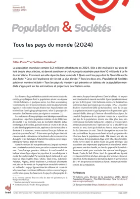 La population mondiale compte 8,2 milliards d’habitants en 2024. Elle a été multipliée par plus de huit depuis deux siècles, et devrait continuer à croître jusqu’à atteindre peut-être 10 milliards à la fin du XXIe siècle. Comment est-elle répartie dans le monde ? Quels sont les pays dont la fécondité est la plus forte ? Ceux où l’espérance de vie est la plus élevée ? Tous les deux ans,Population & Sociétéspublie un numéro intitulé « Tous les pays du monde » qui présente un tableau de la population mondiale s’appuyant sur les estimations et projections des Nations unies.